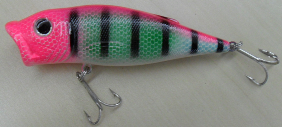 Isca artificial popper de superfície , que emite bolhas na água quando trabalhada , o que irrita os predadores fazendo com que a ataque com fúria !
