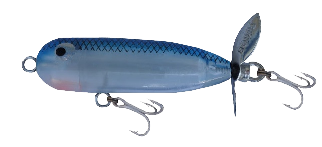 Trata-se de uma excelente isca para pesca na superfície , pelo fato de ter uma hélice acoplada a sua cauda , proporciona movimentos e ruídos na água , atraindo fatalmente os predadores .